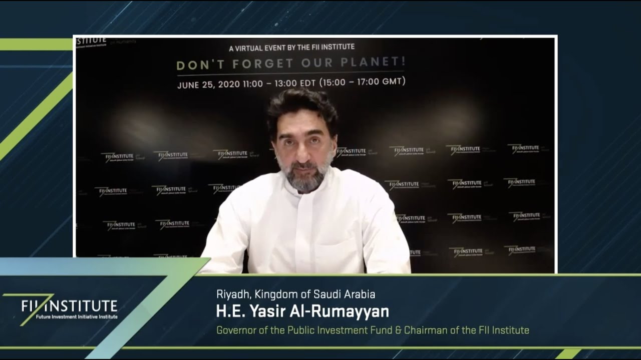 H.E. Yasir Al-Rumayyan, Governor of the Public Investment Fund & Chairman of the FII Institute, delivered the openings remarks at “Don't Forget Our Planet!,” the second live virtual event of the FII Institute Series on June 25, 2020, and spoke about how collaboration between the public and private sectors is essential in driving a sustainable recovery plan. #ImpactOnHumanity